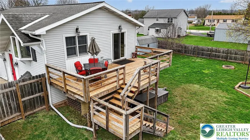 Multiple Offers Received. Highest and Best by Tuesday 4/7 at 9 PM. This lovely lake community home has much to offer both inside and out! A semi-circular driveway offers ample parking and leads to a spacious, concrete front patio. The foyer, connecting the home’s two levels, begins with a soaring cathedral ceiling which continues into the open concept living area featuring an updated eat-in kitchen whose center island gently divides it from the spacious living room. Sliding glass doors access a marvelous deck. This level also offers a full hall bath, laundry room, and two spacious bedrooms each with a walk-in closet, the latter also boasting a half-bath ensuite. Downstairs you begin with a wonderful L-shaped family room, with backyard access, on to a second full bath and an additional two, spacious bedrooms. While one bedroom offers cozy wall-to-wall carpeting, the majority of the lower-level features beautiful ceramic tile flooring! The home’s double lot presents an expansive front yard as well as a marvelous, privacy fenced back yard with its two sheds and play area, beautifully captured form the upper-level deck! Set in the community of Lake Wynonah, amenities abound in its pickleball and tennis courts, clubhouse, pool, and more! A bonus, this secluded lake community puts you within an hour’s drive of both the Reading and Allentown areas! Don’t miss an opportunity to call this wooded, gated community home!