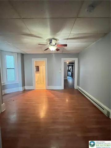 Freshly painted first-floor apartment featuring high ceilings and a bright, airy feel. The unit includes a spacious living room and two bedrooms, each equipped with ceiling fans for added comfort. The bathroom offers a vinyl floor, pedestal sink, and recessed lighting. Enjoy a newly renovated kitchen with brand-new cabinetry, updated flooring and a new dishwasher and updated countertops. Tenants also have access to the yard—perfect for relaxing or entertaining. Landlord covers gas, water, sewer and trash; tenant is responsible for electric only. One month’s rent and one month’s security deposit required at lease signing. No pets allowed (no exceptions).