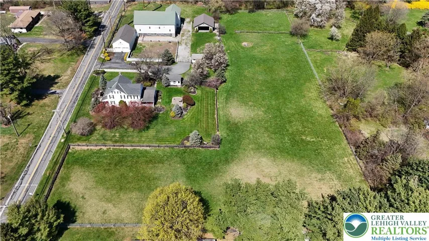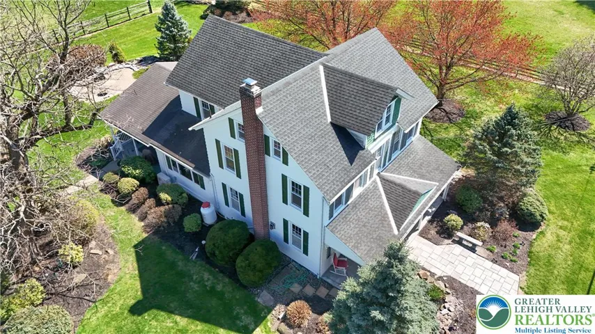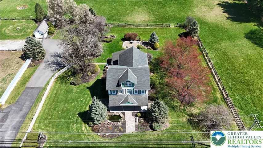 Set on approximately five picturesque acres in the heart of the Lehigh Valley, this exceptional farmette offers a rare blend of refined country living and turnkey equestrian functionality. A beautifully maintained center hall colonial welcomes you with timeless charm, featuring spacious, light-filled rooms, original woodworking details, and thoughtful updates throughout. Enjoy everyday comfort with a gas fireplace, first-floor laundry, two-zone heating, and expansive walk-up third-floor storage.