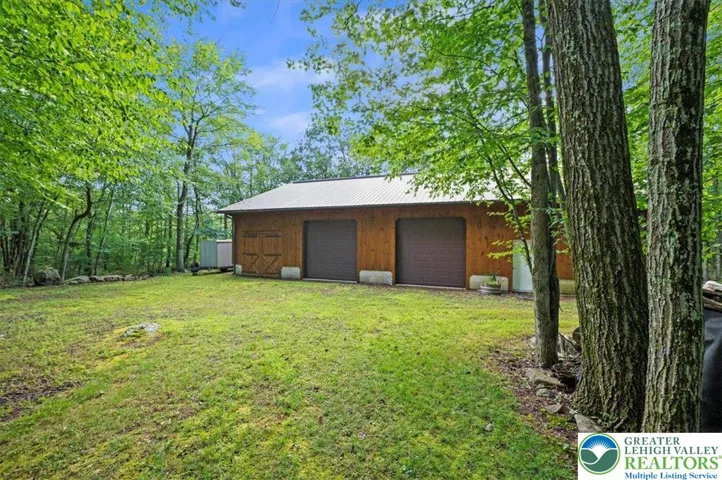 This is not just a home. It’s a private Pocono compound built for those who need space to build, store, create, and escape. Set on over 6 wooded acres within Hickory Run Forest, this property delivers a rare combination of land, infrastructure, and flexibility that is nearly impossible to replicate in today’s market. The centerpiece is a $200,000+ Amish-built 60x40 detached garage and workshop designed for serious use. Featuring three oversized bays, full concrete flooring, electric, extensive lighting, built-in workbenches, utility sink, and a finished upper-level loft, this space is ideal for contractors, car collectors, hobbyists, or anyone seeking a true live-work environment. Whether you're storing equipment, working on projects, or creating a private retreat for your passions, this structure defines the property. The main residence is a handcrafted log home offering authentic mountain character and a warm, lodge-style atmosphere. Inside, vaulted ceilings, exposed beams, and tongue-and-groove woodwork create a timeless interior anchored by a dramatic floor-to-ceiling stone fireplace in the main living area. The open-concept layout connects the living room, dining area, and kitchen, providing a functional space for everyday living or weekend gatherings. A loft overlooks the main level, offering additional flexibility for sleeping, office, or recreational use. The walk-out lower level adds usable space for storage, workshop expansion, or recreation, while the surrounding acreage provides privacy, separation, and long-term flexibility. Multiple included parcels enhance the scale of the property and contribute to a setting that feels secluded, yet remains accessible. Located just minutes from Jim Thorpe, the PA Turnpike, and year-round Pocono attractions including hiking, skiing, and outdoor recreation, this property offers both convenience and escape. Whether used as a primary residence, second home, or a functional live-work compound, the value here is in the combination of land, usability, and infrastructure. This is a property designed for a specific buyer. Someone who understands the value of space, privacy, and purpose-built improvements. Opportunities like this are limited, and replacement cost alone makes this a compelling offering in the current market. Property is being sold as-is. Buyer to verify all measurements, parcel information, and permitted uses. Multiple tax parcels included in the sale.