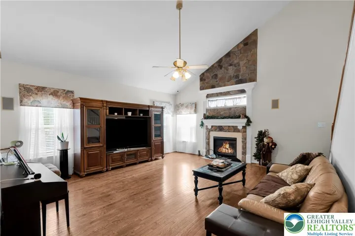 ~Welcome~ to this beautifully appointed 4-bedroom, 3.5-bath Colonial in sought-after Fox Run Estates, offering one of the largest and most desirable floor plans in the neighborhood, and ideally situated on a private cul-de-sac. From the moment you enter, you’re greeted by a dramatic two-story foyer and a thoughtfully designed layout that blends open-concept living with timeless elegance. Gleaming hardwood floors flow throughout the main level, complemented by crown molding and chair rail. A private office behind glass French doors offers the perfect space for today’s work-from-home lifestyle. The spacious kitchen features 42” cabinetry, granite countertops, center island, tile backsplash, and stainless steel appliances, flowing seamlessly into the light-filled breakfast area and soaring family room with vaulted ceilings and a stunning floor-to-ceiling, double mantle stone fireplace. A standout feature of the home is the expansive, sun-drenched conservatory-style room, surrounded by windows and filled with natural light—ideal for a piano, reading area, or indoor garden retreat. Upstairs, the primary suite offers a tray ceiling, sitting area, walk-in closet, and a spa-like bath with double vanity, soaking tub, and separate shower. Three additional bedrooms and a full bath complete the second level. The fully finished lower level provides approximately 1,200 square feet of additional living space, including a theater/media room and kitchenette—perfect for entertaining. Enjoy outdoor living on the rear deck and paver patio with firepit overlooking a private backyard. Additional highlights include a BRAND NEW ROOF, new front storm door, and updated entry lighting. Combining size, layout, and a premium cul-de-sac location, this home presents an exceptional opportunity in one of the area’s most desirable communities.
