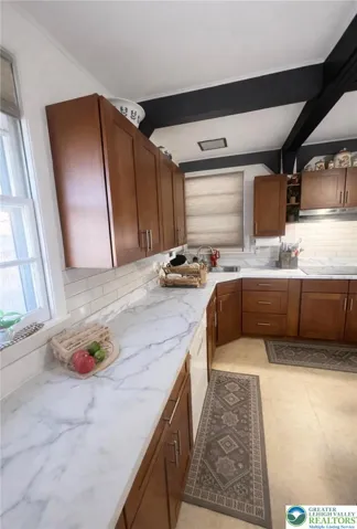 Step inside to a warm and welcoming main living area featuring stunning exposed wood beam ceilings, creating a cozy yet spacious atmosphere. The layout flows seamlessly into an updated kitchen complete with modern cabinetry, ample counter space, and functional design—perfect for everyday living and entertaining.