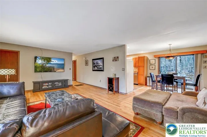 Welcome to Big Bass Lake, a premier community ideally located near major attractions and offering year-round amenities for every lifestyle. Charming and spacious high ranch. The main floor is filled with lots of natural light thanks to oversized windows, creating a bright and inviting atmosphere throughout. A brand-new wood-burning stove, installed last year, adds warmth and charm to the living space, complemented by hardwood floors throughout. Step outside to enjoy the new Trex deck just off the kitchen--perfect for entertaining or relaxing in nature. The home features three generously sized bedrooms, including a primary suite with a private half bath. Both bathrooms have been renovated and are in great condition. The kitchen has wood cabinetry, a nice countertop, and a backsplash. This home offers exceptional potential and privacy, set on a peaceful lot with a finished main level and the opportunity to expand by nearly 800 additional square feet in the partially finished lower level. The lower level has already been insulated and sheetrocked, offering a head start for future finishing--just add paint and flooring to complete the space to your liking. Residents of Big Bass enjoy access to three scenic lakes, indoor and outdoor pools, a dry sauna, and a vibrant clubhouse. Outdoor enthusiasts will appreciate the picnic areas, playgrounds, tennis, basketball, and volleyball courts, along with a private marina. In the winter months, take advantage of the on-site ski hill with T-bar lift and tubing hill for seasonal fun.