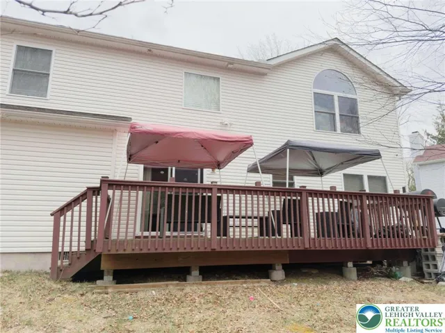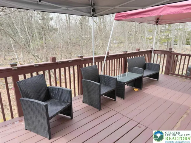 Bright and airy 4-bedroom, 2.5-bath home in an amenity-filled community! Ideally located just a 2-minute walk to the lake, this home offers a paved driveway, spacious deck for entertaining, and a peaceful wooded backdrop for added privacy. Step inside to a two-story foyer and a spacious family room with a cozy fireplace. The open-concept kitchen and dining area feature sliders leading to the deck—perfect for indoor-outdoor living. A convenient laundry room and half bath complete the main level. Upstairs, the primary suite boasts a walk-in closet and a private en-suite bath with a relaxing soaking tub. Four additional bedrooms and a shared hall bath provide plenty of space for family, guests, or a home office. Additional highlights include ample storage and a garage. Located in Pocono Country Place, a gated community offering top-tier amenities including a clubhouse, playground, outdoor pool, tennis courts, and multiple lakes—perfect for year-round enjoyment!