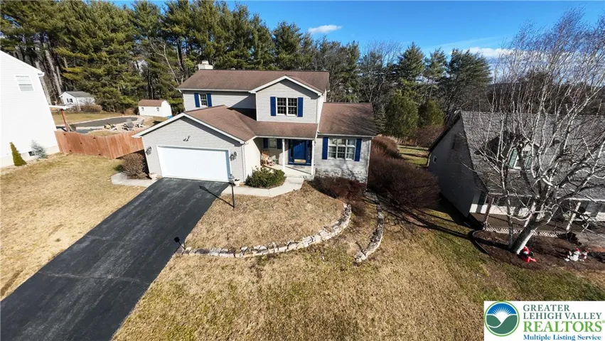 Welcome to Chestnut Hills Estate, where comfort and timeless design come together. Step into a welcoming foyer that opens to bright, open-concept living and dining areas, perfect for everyday living and entertaining. The eat-in kitchen, the heart of the home, flows seamlessly into the family room, creating a warm, inviting gathering space where you can cozy up to a wood-burning fireplace. French doors lead to the deck, offering indoor-outdoor living. The main level also includes a powder room and a laundry/mudroom. Upstairs, you’ll find three spacious bedrooms and a main bathroom. The primary suite includes a walk-in closet and a private bathroom. Outside, the backyard is perfect for unwinding and hosting, with privacy trees and a storage shed. Additionally, an unfinished basement with indoor/outdoor Bilco doors provides extra living space, entertainment, or storage.