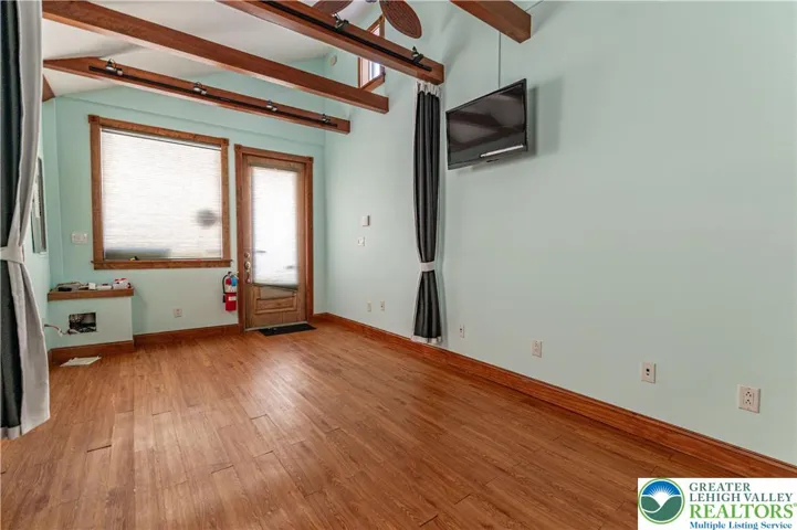 Move right into this charming detached single-story studio offering comfort, flexibility, and low-maintenance living. A covered front porch welcomes you into the bright open-concept interior, where luxury vinyl plank floors flow throughout and a soaring vaulted ceiling with exposed wood beams and a ceiling fan adds character and style. The versatile layout can easily be divided with curtains to create separate family room and bedroom spaces to suit your needs. The well-appointed kitchenette features recessed lighting, a stove, dishwasher, and stainless steel sink, along with the convenience of a walk-in shower and half bath. Step outside to a covered concrete patio—perfect for enjoying the outdoors in any weather—overlooking a fully fenced yard that provides a safe and spacious area for kids and pets to play. Conveniently located close to major highways US-22, PA-33 and I-78 for easy commute, Lehigh University, Sayre Park, shops, restaurants and so much more! *CAN BE USED AS A 1-BEDROOM OR OFFICE; DOES NOT HAVE TO GO THROUGH ZONING*