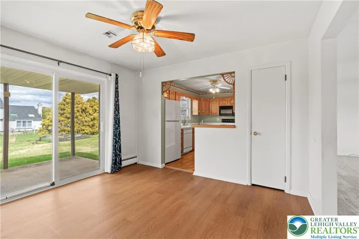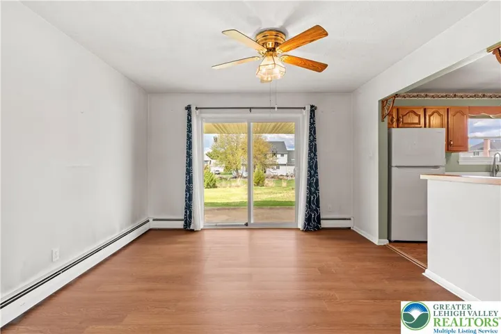 Welcome to this well-maintained ranch home in Macungie. This inviting home located in the Ancient Oaks subdivision offers three spacious bedrooms and 1.5 baths, which provides comfortable living on one floor. The large windows in the living room provide a flood of natural light throughout the day. The dining room opens to a covered patio through a slider, creating a wonderful indoor-outdoor flow for relaxing or entertaining. The kitchen features a built-in counter that comfortably seats two to three people, making it perfect for casual meals or morning coffee. The finished basement offers extra living space for a family room or recreational room and with a large storage area/workshop right behind the finished space. This home offers energy efficient hot water baseboard heat to keep you warm in the Winter and a central air system to keep you cool in the Summer. An extra-long one-car attached garage offers great storage for lawnmowers and additional tools. Centrally located close to Route 100, for an easy commute, just a few minutes’ drive to various shopping centers, grocery stores, parks and restaurants. Located in a quiet, established neighborhood within the East Penn School District, this home combines comfort, convenience, and classic ranch-style living. Home being SOLD AS IS! This lovingly cared-for property is ready for its next chapter, schedule your appointment today!