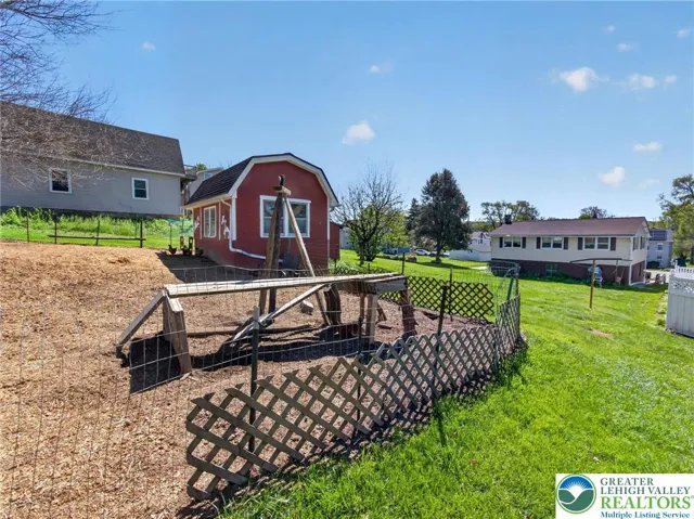 East Penn School District detached home set on a property with a unique wraparound driveway and an impressive two story oversized detached garage offering exceptional space for vehicles, storage, hobbies, or workshop use. The garage is a standout feature and provides versatility that is hard to find. Inside, the home offers a practical layout with a main floor bedroom and a full bathroom with a walk in accessible shower. The eat in kitchen includes a pantry closet and connects conveniently to the mudroom and laundry area for everyday functionality. The living room features classic wood paneling that adds warmth and character. Zoned heating provides comfort and efficiency throughout the home. Outside, the property also includes a chicken coop and storage shed, offering space for gardening, small livestock, or additional outdoor storage. A great opportunity to own a detached home in the East Penn School District with unique outdoor space and flexibility for a variety of uses.