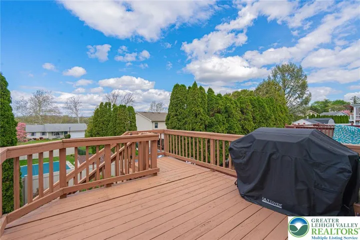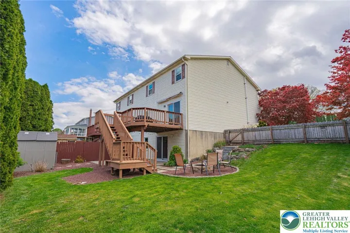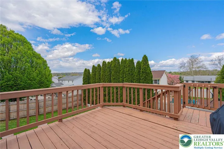 Welcome to this beautifully maintained twin home tucked away on a quiet street in Wynnewood Estates! From the moment you arrive, you’ll notice the pride of ownership starting with the beautifully landscaped, fully fenced yard. Enjoy nights around the firepit, host gatherings on the deck, or unwind on the patio just outside the walk-out basement. Inside, the first floor offers a spacious living room, a convenient half bath, and a large eat-in kitchen with plenty of room for cooking and entertaining. Upstairs, the primary bedroom is a true retreat featuring 3 walk-in closets—yes, three! You’ll also find two additional generously sized bedrooms and a beautifully remodeled full bathroom. The walkout basement adds even more living space with a versatile family/rec room, complete with a built-in bar perfect for entertaining. There’s also a large unfinished area providing ample storage. Additional highlights include a 1-car garage and major updates already done for you: all windows and the sliding glass door replaced in 2023, plus a brand new HVAC system, garage door, and shutters in 2025.
