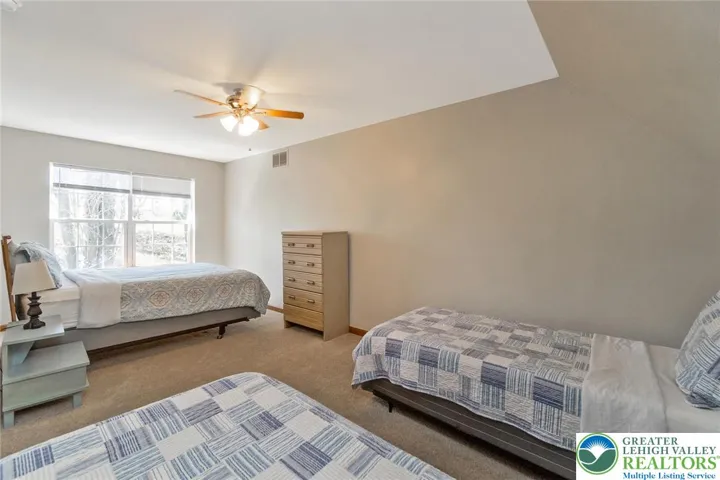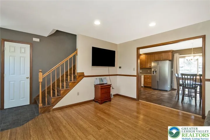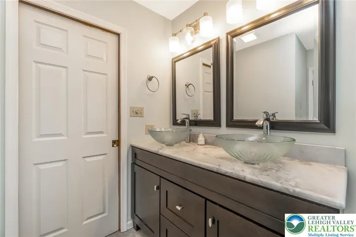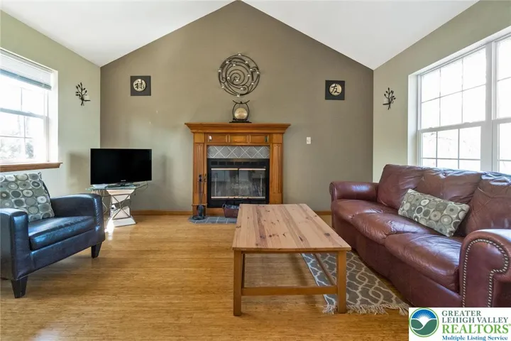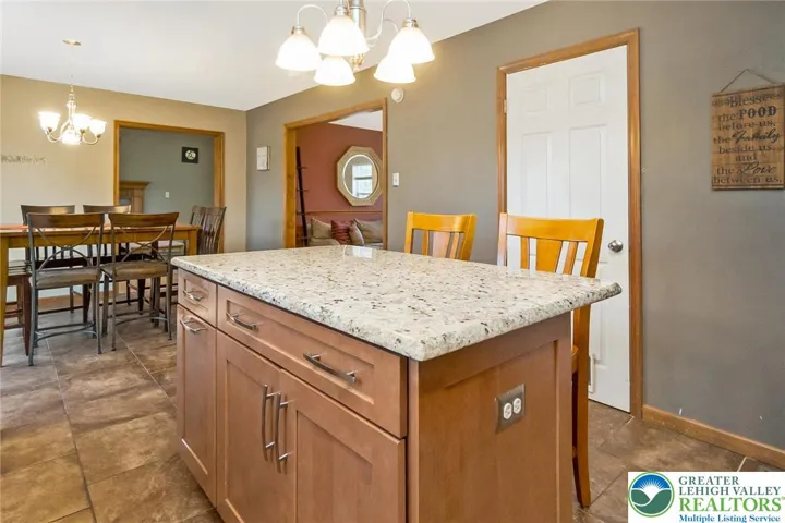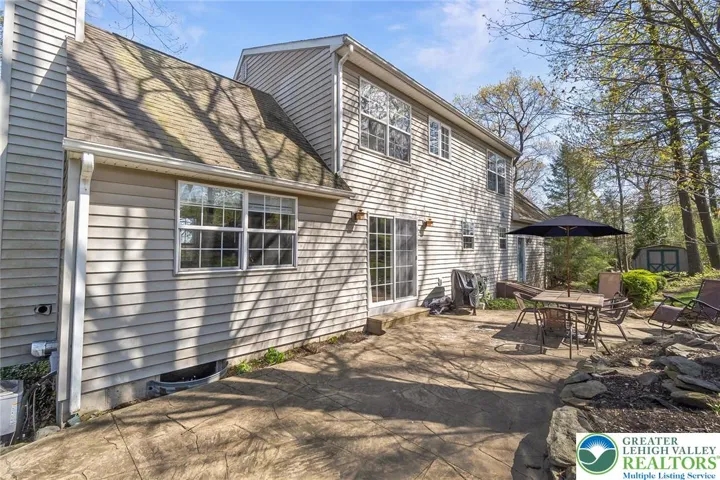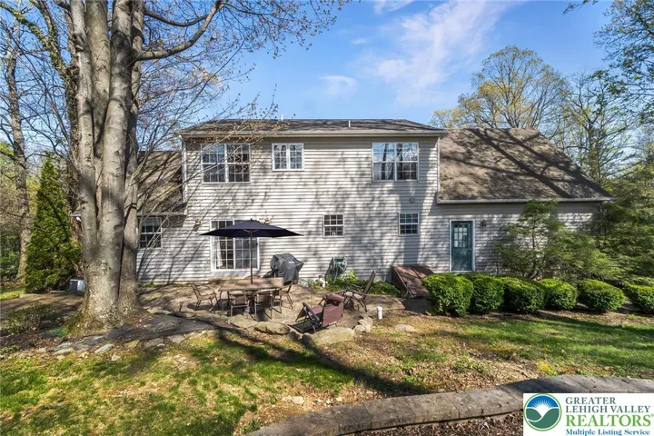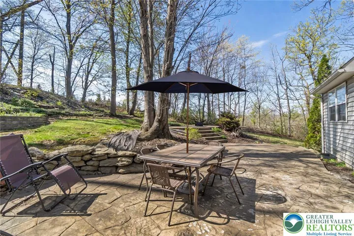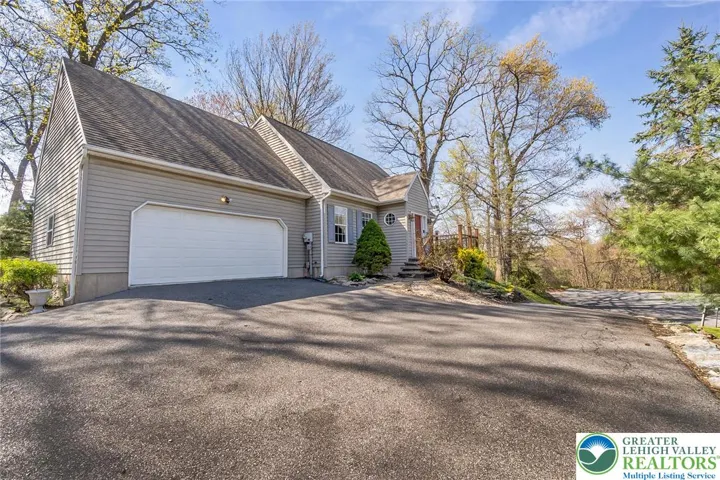 Tucked away on a private cul-de-sac, this beautifully maintained home with modern improvements sits on a full acre, offering a rare combination of privacy and expansive grounds. With 2,006 sq ft of living space, which includes a partially finished basement, the home offers 3 spacious bedrooms and 2 full baths, elegantly updated with designer vessel sinks, beautiful vanities and refined finishes. One of the bedrooms is located on the first floor, offering added convenience for guests, a home office or multigenerational living. A standout feature is the cathedral-ceiling family room, where natural light and a wood-burning fireplace create a warm, inviting focal point with a combination of scenic country and mountain views. Fully renovated, the home showcases a stunning kitchen complete with granite countertops, stainless steel appliances, and a spacious center island. Upstairs a private bath awaits with a steam shower for a spa-like experience. The home offers a mix of hardwood, tile, and carpet flooring, along with newer central air and forced air heat for year-round comfort. Outside, enjoy a beautifully designed two-tier stamped concrete patio overlooking the expansive yard, perfect for entertaining or relaxing. Additional features include a large, attached garage and a garden shed for extra storage. Look no further for a well-rounded property that is move-in-ready, offering space, updates, and a peaceful setting. With a history as a successful short-term rental, this home offers a unique opportunity for continued income or a private, retreat-like escape to call home.
