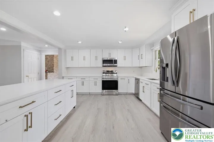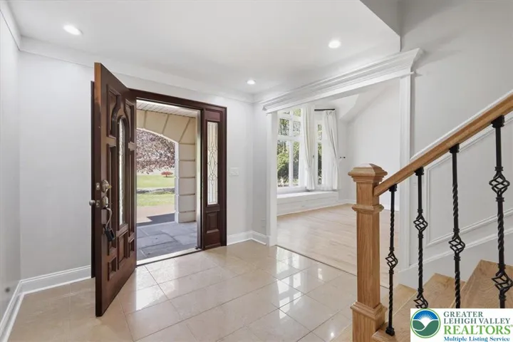 Welcome to this beautifully updated 5-bedroom, 3 full-bath home situated on a spacious 1-acre lot, located next to a golf club. This two-story home offers an open floor plan with flexible living spaces. The first floor features a great room with high ceilings that opens to the kitchen and dining area. The kitchen includes brand-new appliances, new cabinetry, and quartz countertops. Hardwood flooring extends throughout the first-floor dining room, kitchen, living room, and large bonus room. The dining area and kitchen open to the backyard featuring a stunning paver stone patio and hardscaping. The home offers 5 bedrooms, a dedicated office, 3 full bathrooms, and a 2-car garage. All bedrooms feature new hardwood flooring, and the entire home has been freshly painted. Additional updates include a new asphalt driveway. The finished basement provides additional living space suitable for recreation, home office, or entertainment. The second floor includes a primary bedroom with a walk-in closet, en-suite bathroom, and access to balconies. Four additional bedrooms complete the upper level, including one oversized bedroom with a balcony, ideal for a home office or hobby room. “Home features brand-new zebra blinds, included in the sale price.” The backyard also includes two additional storage sheds, offering ample space for tools and outdoor equipment.