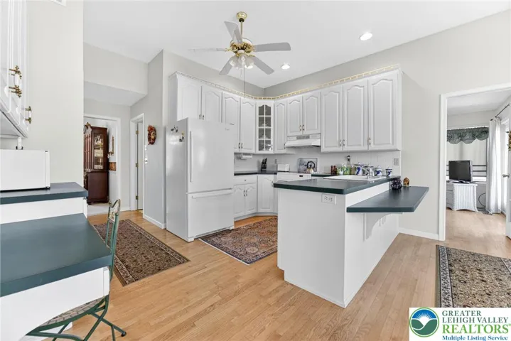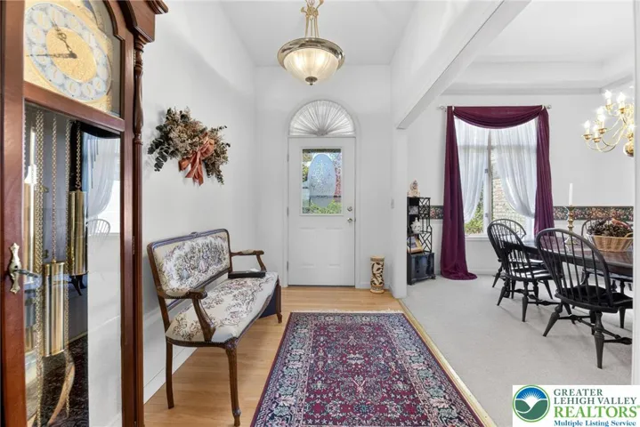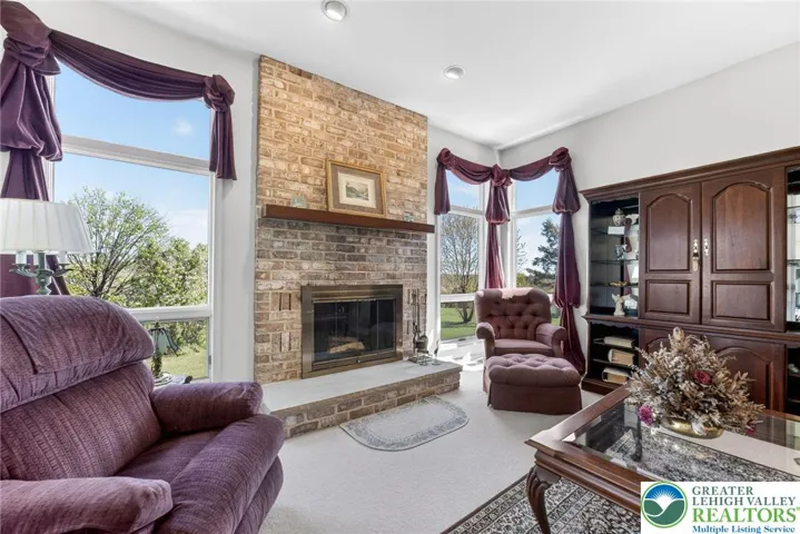 Step inside to a spacious family room filled with natural light from oversized 8-foot windows, perfectly complemented by a cozy fireplace for those chilly evenings. The eat-in kitchen features ample counter space and cabinetry, making it ideal for both cooking and gathering with family and friends.