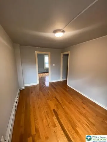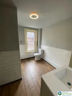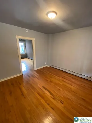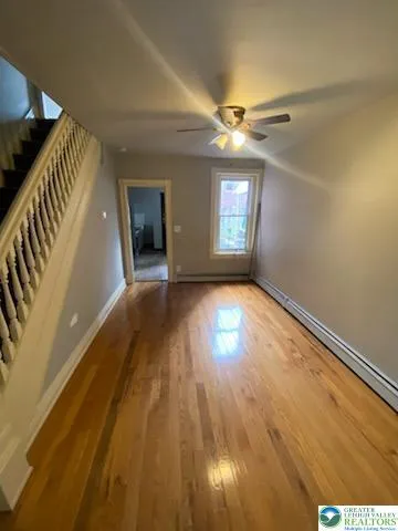 Three bedroom- 2 Full bath Row Home with a 2 car off- street parking pad. First floor provides an updated kitchen, Living room, Dining room, Utility room (Laundry hook-up), and full bathroom. living room has an installed wall and is flexible. It can be converted into a bedroom or a living room. The second floor has 2 nice-sized bedrooms and another full bath with double vanity. The third floor offers a heated 24 x 13 Room with plenty of closets. The house comes equipped with two heat sources, zoned electric and oil options. A gas meter is also currently installed at the house for conversion. Other amenities incl. 200 Amp electrical Service, all windows replaced, walk-in closet, full basement w/ outside entrance, and covered porch.
