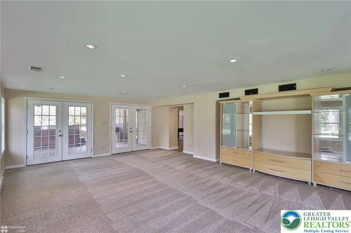 The home boasts multiple living and entertaining areas including a spacious living room, family room, game room, and an expansive sunroom/media room filled with natural light—ideal for gatherings, hobbies, or extended family living. The flexible layout offers excellent potential for multigenerational living, home office space, or recreation areas.