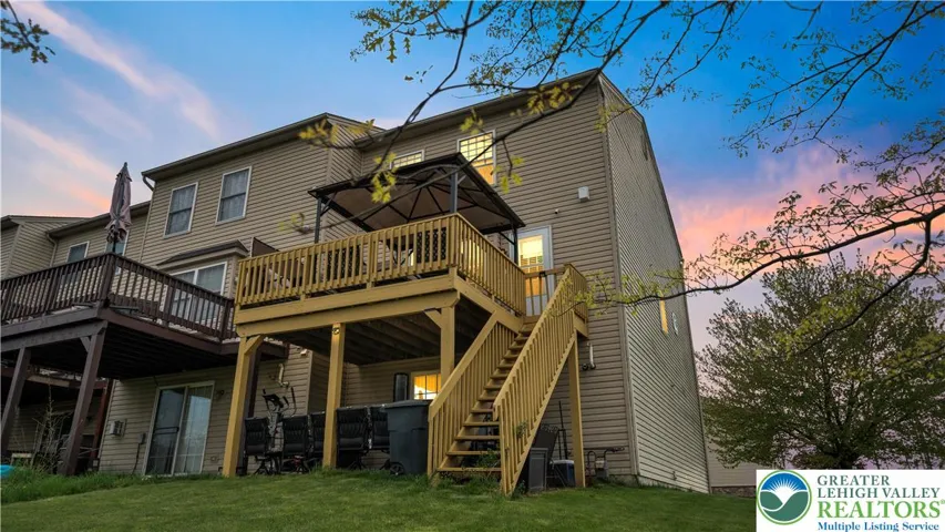The main level features a bright living area, dining space, and an eat-in kitchen with ample cabinetry, modern appliances, and access to the rear deck, perfect for relaxing, grilling, or entertaining. Upstairs, you’ll find three well-sized bedrooms, including a primary suite with its own private bath.