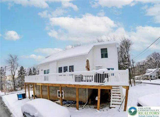 LOCATION, LOCATION, LOCATION!!! Situated in the heart of Mount Pocono, this new contemporary home offers unbeatable convenience, just a short walk from major stores like Walmart, Lowe's, and ShopRite, with easy access to NYC buses. With 2,468 sq ft of modern living space, the home features 4 bedrooms, 3 full bathrooms, an expansive living room with a cozy gas fireplace, and a wrap-around deck perfect for entertaining parties and barbecues. Only 2 years young, this home is outfitted with energy-efficient appliances and includes a garage and large driveway, as well as a spacious backyard for various activities. Step inside the main floor that boasts cathedral ceilings, a large living room and den with 6-foot sliding patio doors leading to the deck, a dining room, kitchen, and a walk-in closet. The upper level contains 3 bedrooms and a Roman bathroom. The entry-level basement offers in-law suite potential with a full bath, laundry area, and two flexible rooms. Central water and sewer ensure reliable and efficient service. This contemporary home combines modern amenities with a prime location for the perfect living experience.